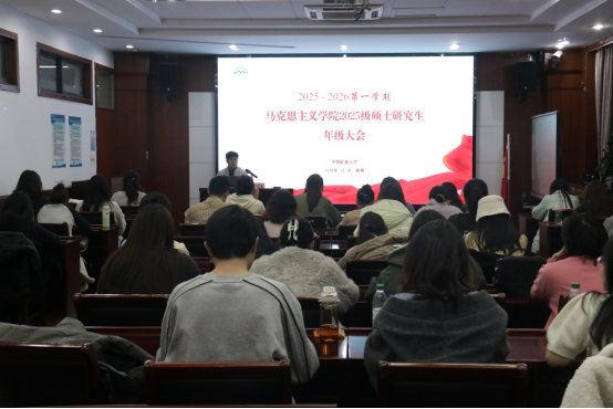 为引导学生明确学业规划、筑牢安全防线、树立发展目标,近期,马克思主义学院在文科楼A208召开2024级、2025级硕士研究生年级大会。马克思主义学院专职辅导员田宏远出席会议,2024级、2025级全体硕士研究生参加会议。