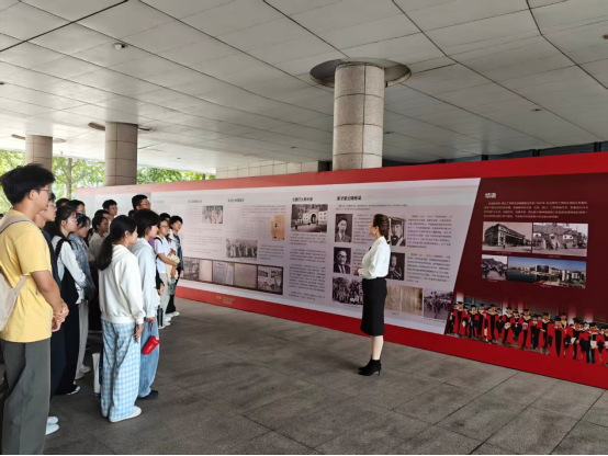 余文静:这堂课节奏很特别:前半节课,我们欣赏着学长学姐们的作业成果,敬佩于先辈们的伟大抗战精神;后半节课,老师便带着我们走出教室,讲述矿大校史,进行了一场身边的“寻根之旅”。站在展板前,看昔日校园的老照片、听先辈们的故事与矿大一路走来的风雨历程,脚下土地、周围建筑似乎被注入了灵魂,像“时空穿越”般,先辈苦读身影与当下校园重合。我们不再是历史的旁观者,而是作为其中的一员,延续未来。