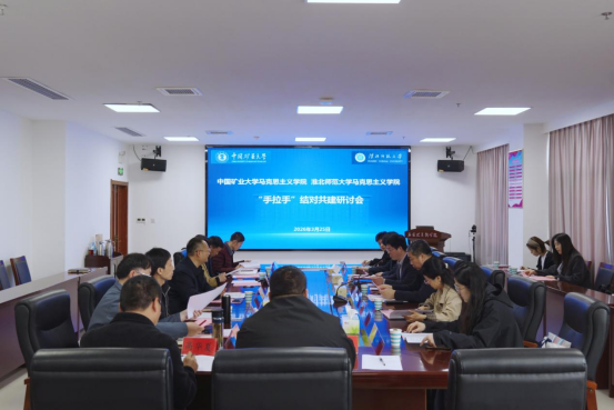 2026年3月25日下午,中国矿业大学马克思主义学院与淮北师范大学马克思主义学院联合举行党委理论学习中心组(扩大)学习会议暨“手拉手”结对共建研讨会。会议在淮北师范大学滨湖校区召开。两院领导班子成员、骨干教师及研究生代表参加会议。